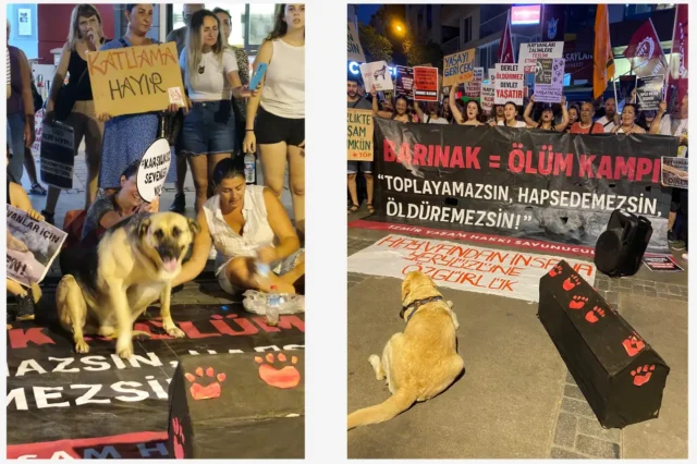 - Biz İzmir yerelinde yıllardır tüm canlıların haklarını savunan yaşam hakkı savunucuları olarak, hayvan haklarının bu kanlı yasa ile birlikte toplumsal muhalefetin gündemine girmesiyle birlikte, hayvanlar için hak temelli bir mücadelenin mümkün olduğunu ve hayvanların haklarını birlikte savunabileceğimizi gösterdik ve göstermeye devam ediyoruz. İzmir Yaşam Hakkı Savunucuları olarak mücadelemizi tüm yaşamı kapsayacak şekilde örmek, İzmir’de ve dünyadaki her canlının yaşam hakkını savunmak için yola çıktık. Bu sebeple mücadelemiz sadece hayvanlarla sınırlı değil. Kimseyi dışarda bırakmadan sürdürülebilecek bir mücadele mümkün.